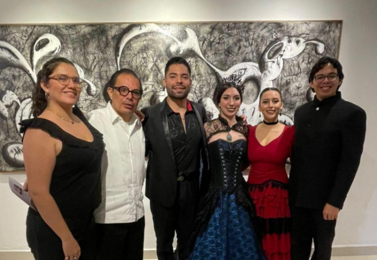 Daniela Contreras – promotora, Rafael López – director de la galería, Antonio Arce – Maximiliano en la primera fecha del recital, Rose García – Carlota de Bélgica, Francia Baume – bailarina y Aram Ortiz – pianista.